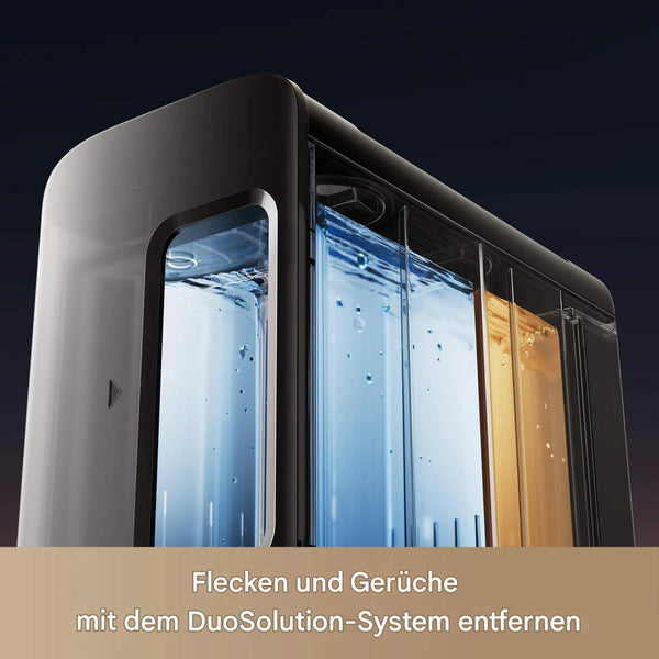Innovativ* integriert mit zwei Reinigungsflüssigkeitskammern und intelligenter Dosierung: Kammer A für die allgemeine Reinigung und Entfernung hartnäckiger Flecken; Kammer B zur Neutralisierung von Tiergerüchen – gemeinsam für ein saubereres und frischeres Zuhause in nur einem Arbeitsgang.